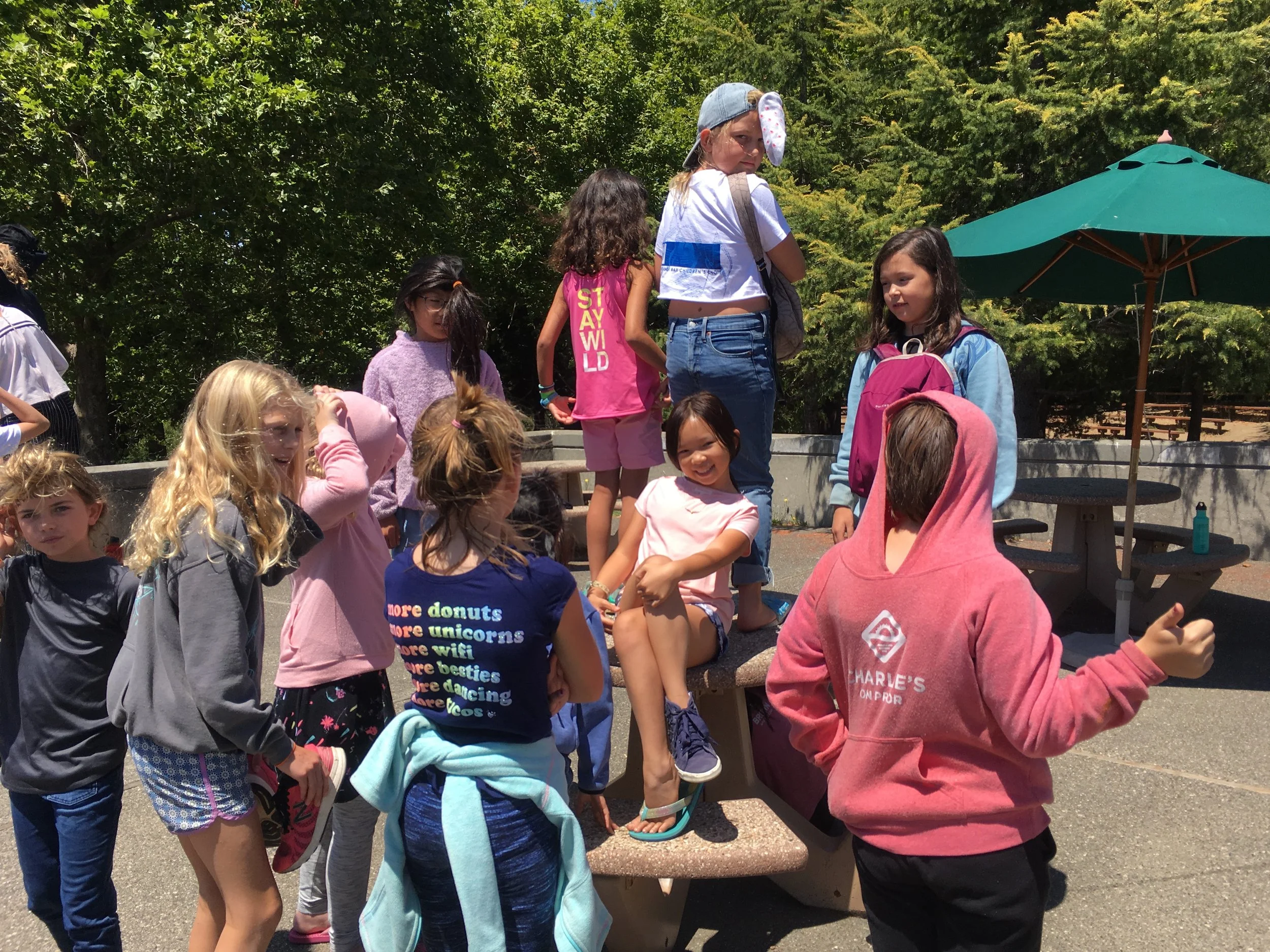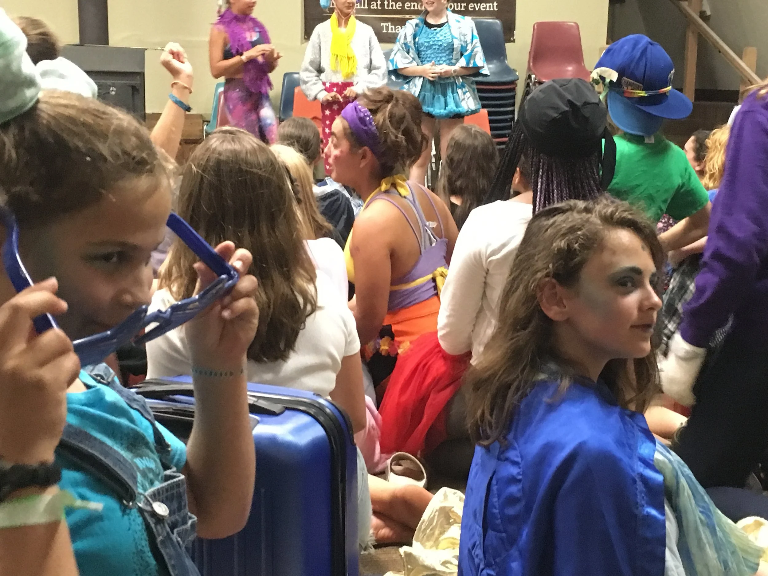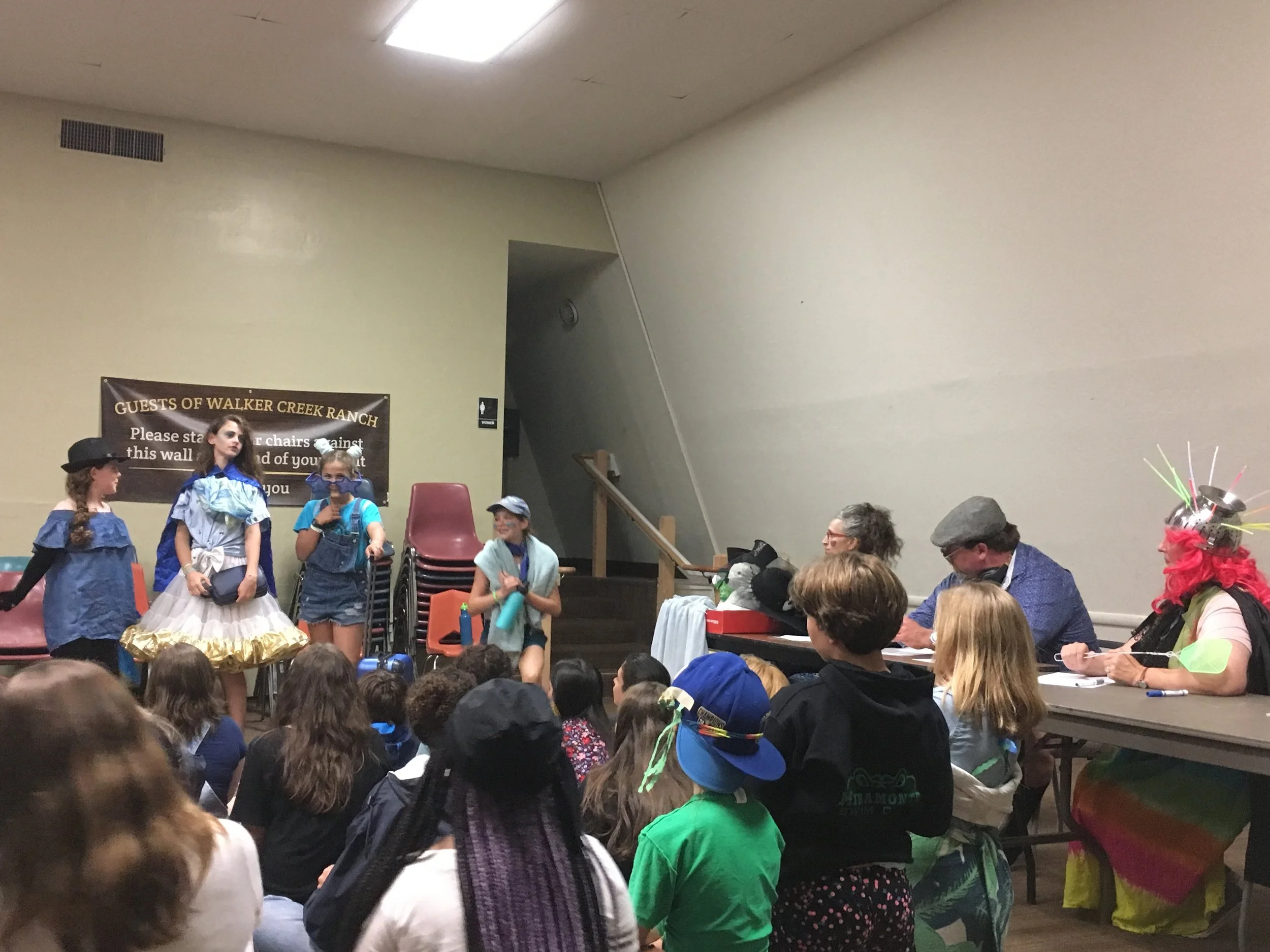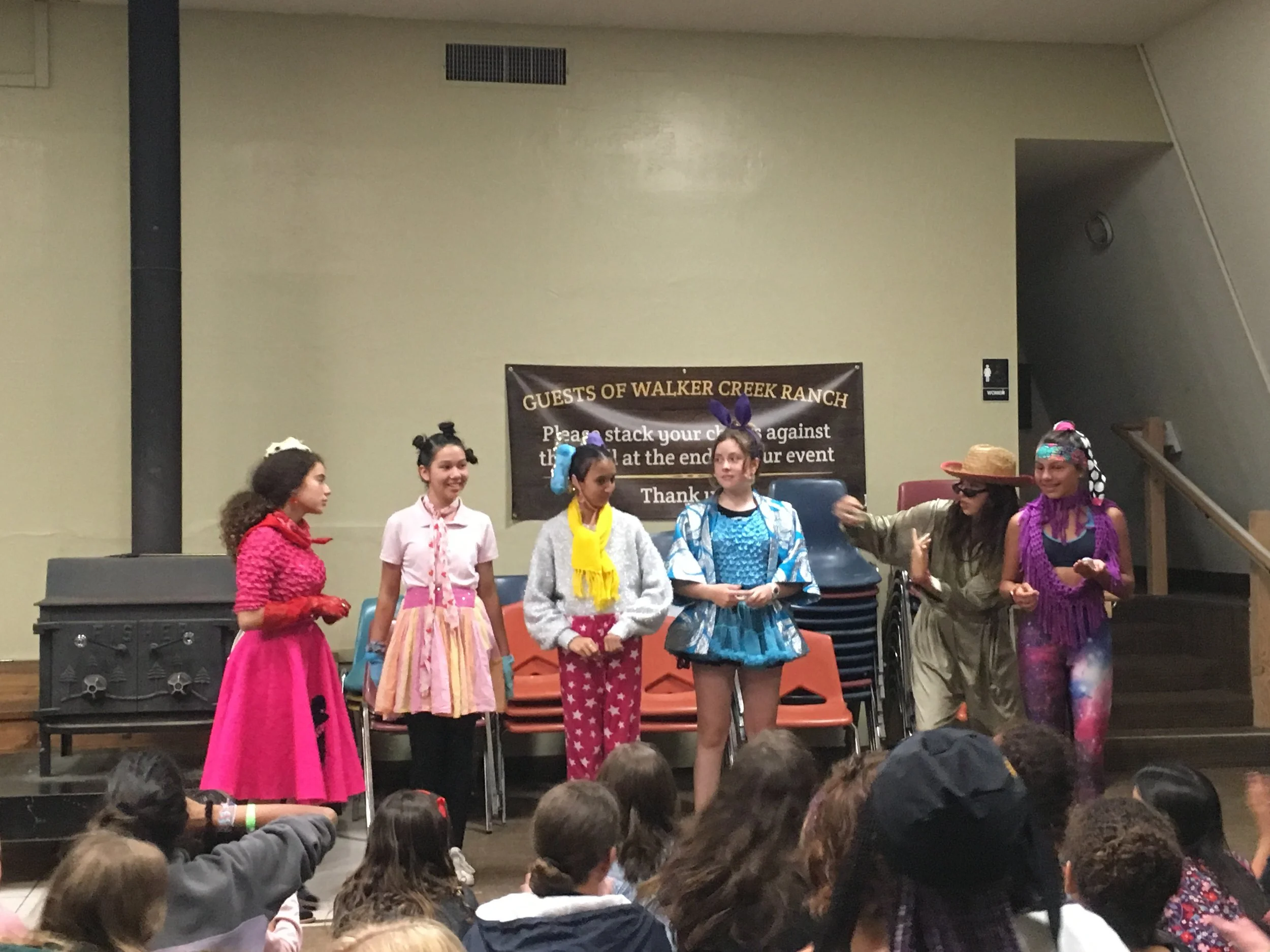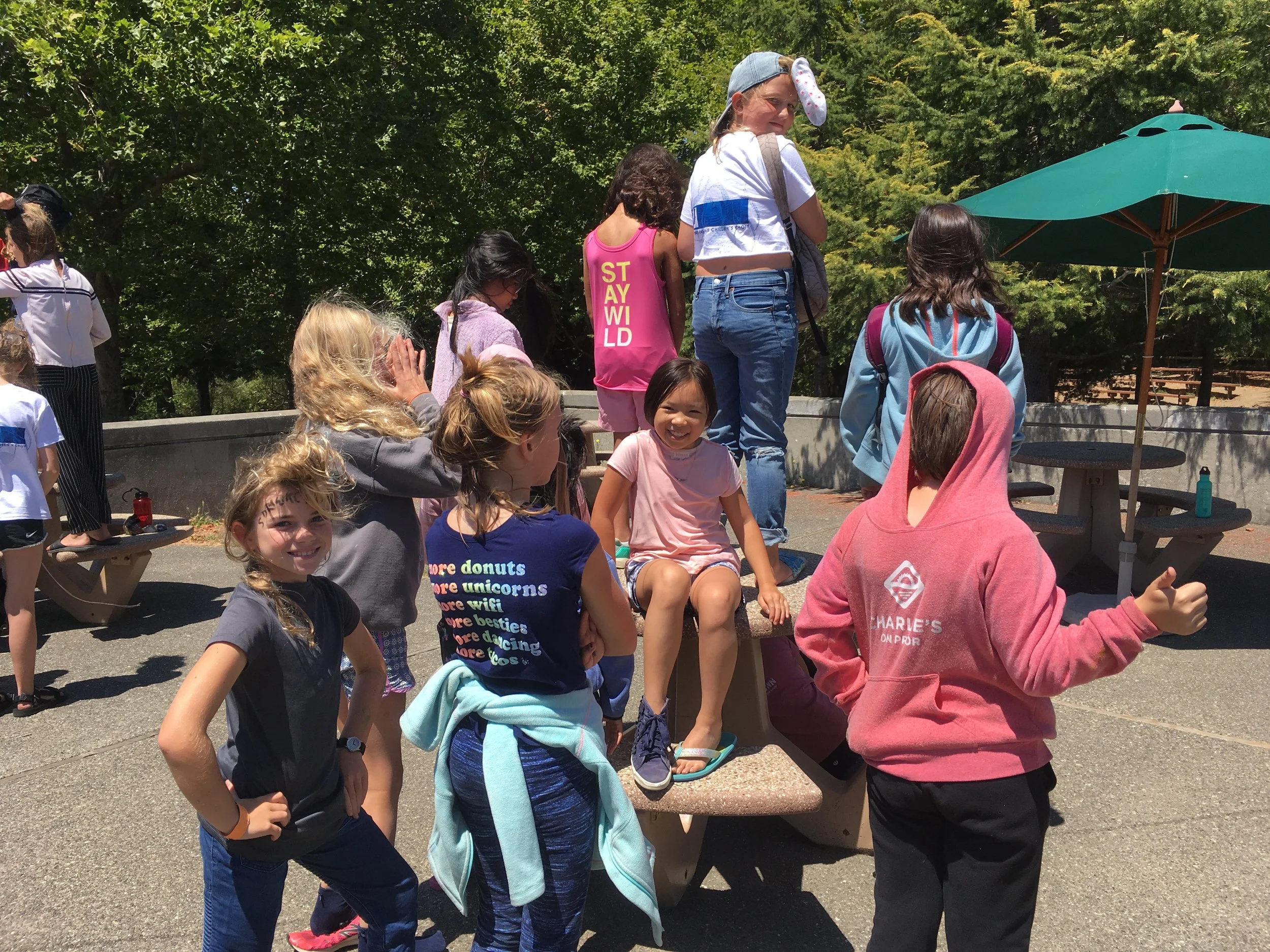 Campers awoke to a brisk morning today, and ate a hearty breakfast of pancakes with berry compote. Then campers participated in morning warmups, today led by voice teacher Laura Storm. Morning theory classes sped by, with some campers creating DIY chord progressions that had to include chromatic solfege inin SIr WIlliam’s theory class. During morning rehearsal, CC and Ensemble recorded sounds for a soundscape being created by composer Danny Clay for an installation at the downtown Berkeley bart station, as well as rehearsed their usual songs. For lunch, campers enjoyed chicken sandwiches and chatted with their cabin mates, all dressed in backwards attire for today’s spirit day. Camp Joyful Voices won first place for their wonderful Backwards day outfits. This afternoon, free time was packed with fun! Along with the usual sectionals and voice lessons, campers decorated treasure boxes at arts and crafts to safekeep camp memories or create a bedroom for their pet rocks. Camp joyful voices played camper catch counselor, a long standing camp game where kids find their CIT’s hidden all over camp, then paint them. It was a bit windy at the lake today, but that didn't stop a few of our intrepid campers from boating and enjoying nature here at walker creek. Recital was packed with talented student performers, such as Erin Bartholemew, Anne Reardon, Genevieve Hiller, Claire Weiss, Lucy Henrich, Oona Swartz, and Anna Klein. Dinner this evening was baby back ribs and baked beans. The campers had massed evening rehearsal in order to practice the Star Spangled banner for their upcoming performance at the A’s game. Our evening activity tonight was the much anticipated Project Funway! The theme this year was celestial bodies, and each cabin was assigned a planet form the solar system to inspire their design. A designer and three models are chosen at random, and campers have about twenty minutes to put together three different looks, one for evening wear, one for casual street style, and one for active wear. Then everyone convenes for a fashion show, with each cabin presented by their designer to a panel of judges. Judges this year included Chad (Mr. Brown), Miss Sparkles (Ms Anne), and a delegate from Planet NooNoo (voice teacher Audrey). The winner this year was cabin Condor, with their lovely designs inspired by venus! Their cabin wins the opportunity to dress up their counselor Rachel tomorrow in whatever crazy way they choose. The campers are resting now for another day of fun tomorrow!