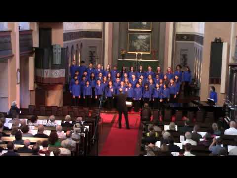 Vox Aurea opened the concert with a song about the tumultuous relationship between Finland and Sweden - starting out as friends, then arguing and dividing, and finally coming back together. Their dynamic performance was much appreciated by Ensemble, who cheered from the back pews before joining them in the sanctuary for the massed pieces. The energy of "Crossings" was very special, with composer Eric conducting one part along with the conductors of Vox Aurea and Ensemble, all while being professionally documented. The claps and stomps were particularly vigorous, marking the complete synchronicity of the two groups.