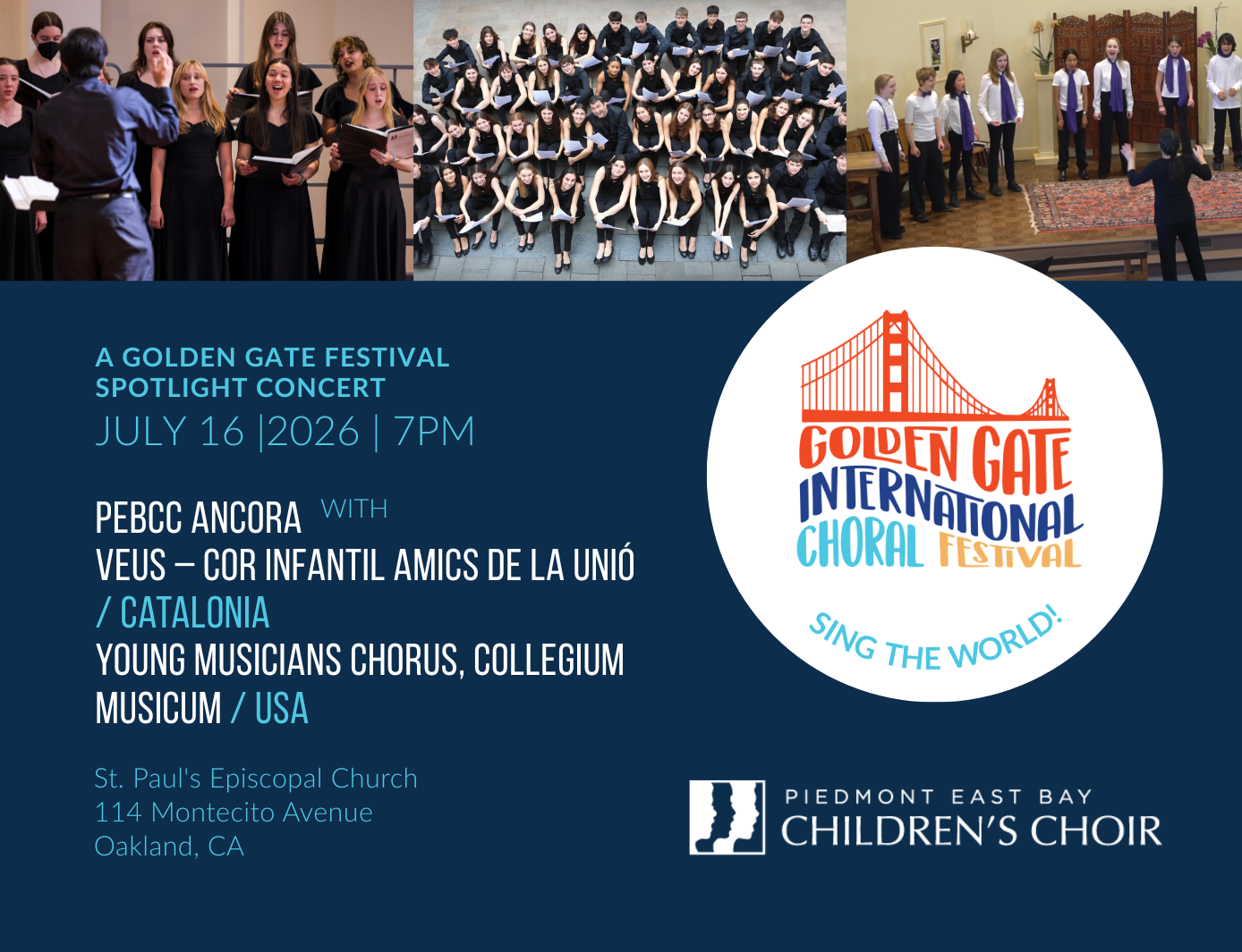 Participating Choirs: Piedmont East Bay Children’s Choir: Ancora, Veus – Cor Infantil Amics de la Unió, Young Musicians Chorus – Collegium Musicum